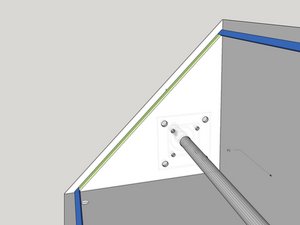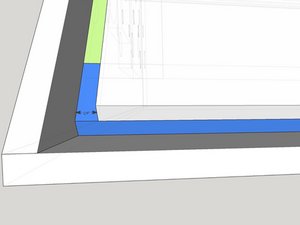 | [* black] Tack P7 into place with a gap of 1" on both ends from the bottom sheet and back plate. This distance is important for the two P6 parts to be welded in next. there should also be a 1" depth in from the top edge of the sidewall. | |