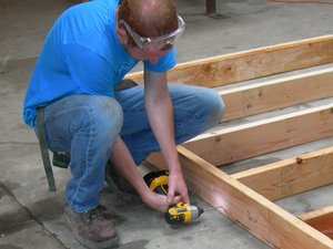 | + | [* black] ***Pre-drill two holes from the outside at the ends of the board to avoid splitting*** as shown on the second photo of this step. (The pre-drilling is only necessary at the ends of the board, not in the middle.) Screw (or nail, if you choose) the pieces into position. |