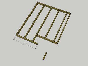| + | [* black] First, you will attach the three 6' - 9" pieces and the three, shorter 5' - 7" pieces to the rim joist as shown in the first image. |