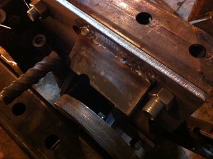 | + | [* black] Move tractor to the backhoe and put the upper quick attach finger weldment into place on both the right and left-hand sides Of the quick attach and tack into place |