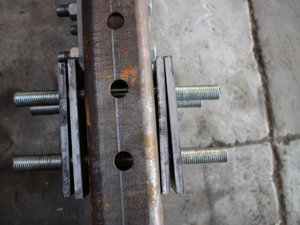 | - | [* black] put two plates on either sides of the frame tubes and slide the threaded rods through the top four holes so that the rods stick out a bit on each side |