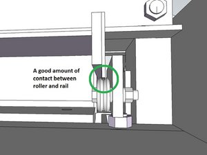 Tighten the adjustment bolts so they push the rollers up to the rail, so all of the rollers are contacting the rails.