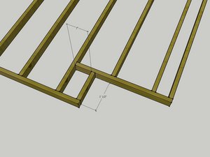 Attach the small piece into the rim framing. The 7" dimension in the drawing shows how far away from the next joist the small block is. Use this measurement to ensure that you attach the small block properly.