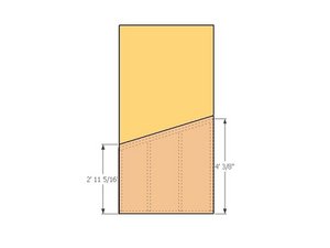 Cut the 17 degree angle on the piece by marking the two vertical distances and snapping a guide chalk line to connect the two. Use a 7-1/4"circular saw to make the cut. (horizontal dimension is 4')
