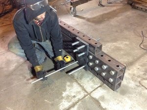 Slide the threaded rod through the bottom holes of the plates and frame leaving half the length sticking out on each side.