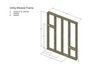 This image shows the frame and lists the materials counts to construct the frame, including the sheathing material.