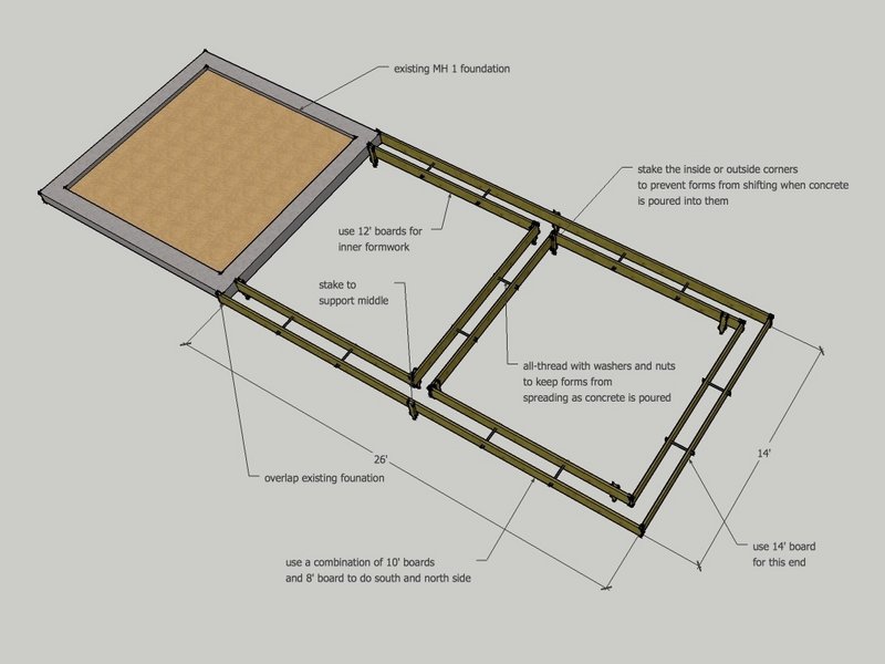 The foundation is the structure upon which the walls of the Microhouse stand. This foundation is a shallow, frost-protected footer. It rests on an insulated bed of gravel, and like all foundations, it spreads the load of the building into the earth.